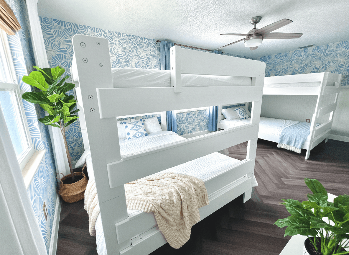 Retreat to 4 stylish bedrooms inspired by Italy’s coast sleeping 12+ comfortably: → Amalfi Master: King, en-suite, 75" TV → Capri Suite: Queen + baby crib, workspace → Positano Aqua: Queen, workspace, pool views → Venice Bunkroom: 4 Queen Bunk Beds (Sleeps 8) Perfect for a fun kids or adults sleeping arrangement