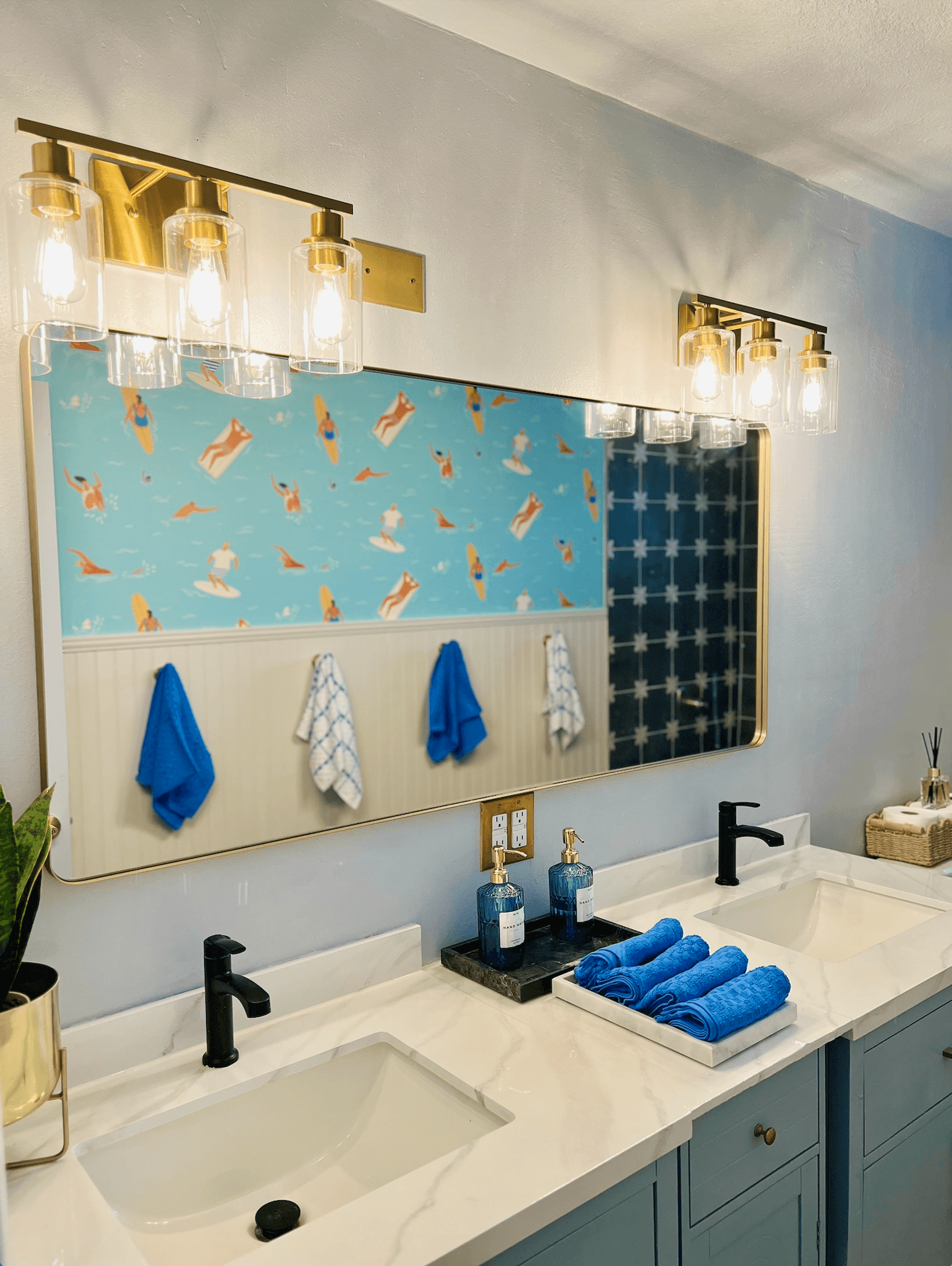 Relax & unwind in 2 modern full bathrooms with plush towels, hair dryer & essentials. → Amalfi En-Suite: Walk-in shower, vanity → Main Bathroom: Panoramic mirror, double vanity, shower/tub combo Bright, fresh, and perfect for getting beach-ready. 🚿